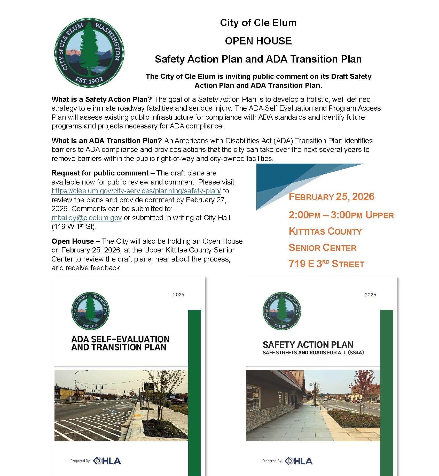 Open House Safety Action Plan and ADA Transition Plan – February 25th 2:00pm at Upper Kittitas County Senior Center